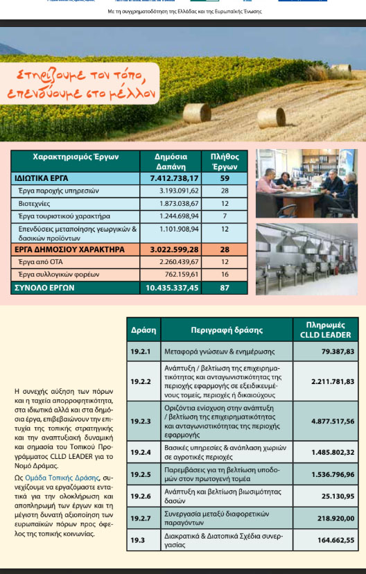 Δείτε παρακάτω αναλυτικά τα στοιχεία που αφορούν στην υλοποίηση του τοπικού προγράμματος LEADER: