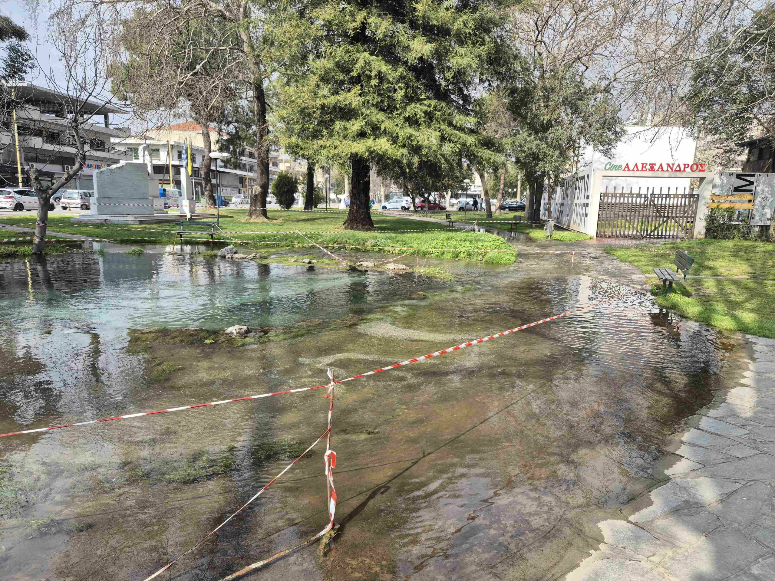 Τα μεγαλύτερα προβλήματα εντοπίστηκαν στις περιοχές πίσω από το ανοικτό κινηματοθέατρο «Αλέξανδρος» καθώς και στο κέντρο του δημοτικού κήπου όπου τα νερά αναβλύζουν σε μεγάλες ποσότητες.