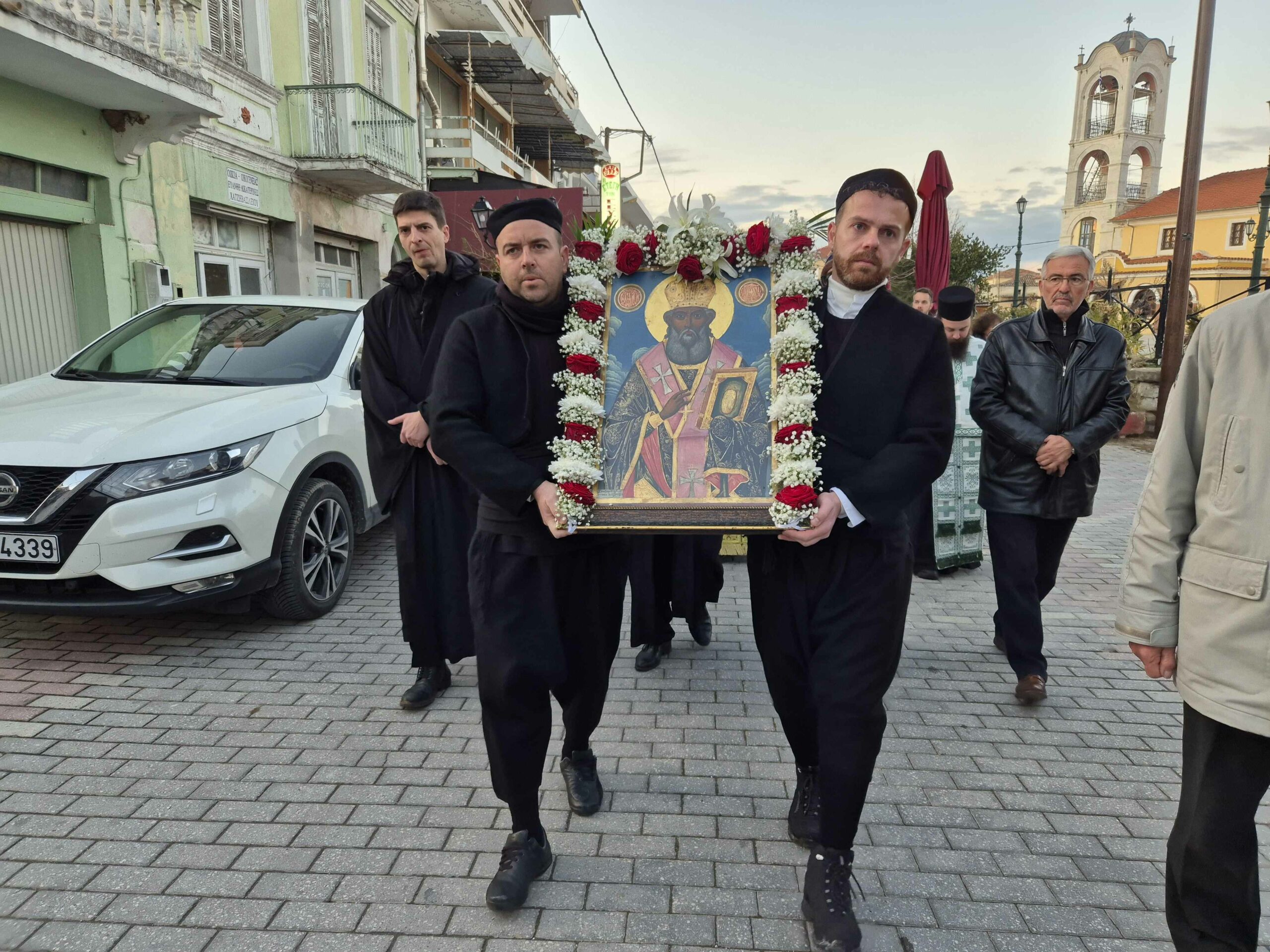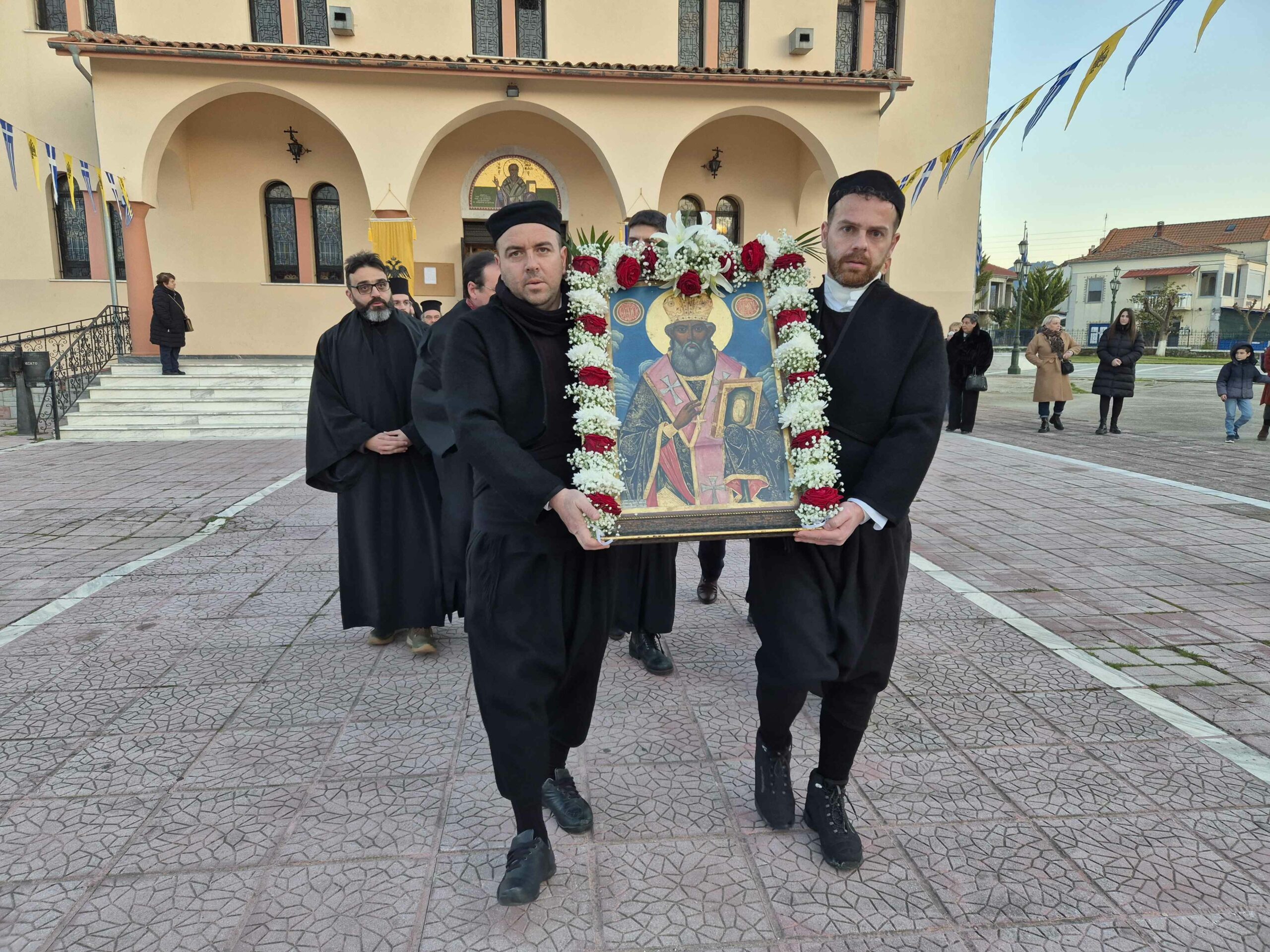 Σήμερα Σάββατο, παραμονή της γιορτής, πραγματοποιήθηκε το απόγευμα, η Λιτάνευση της Εικόνας του Αγίου και αμέσως μετά τελέστηκε Μέγας Πανηγυρικός Εσπερινός.