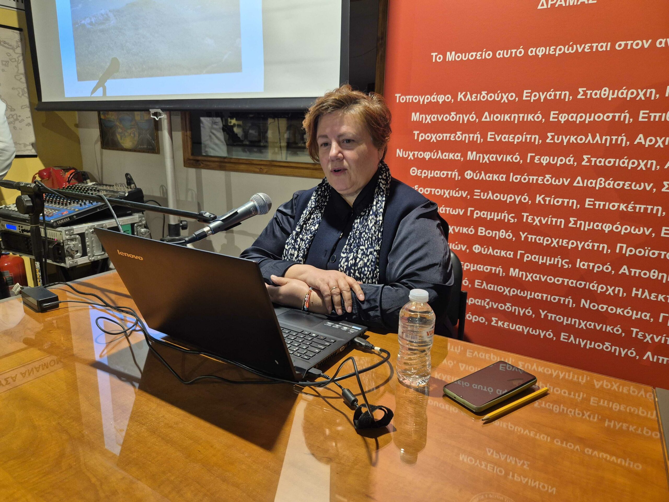Κεντρική ομιλήτρια της εκδήλωσης ήταν η κ.Βάσω Πουλιουδή, προϊσταμένη της εφορείας Αρχαιοτήτων Δράμας, η οποία ανέπτυξε το θέμα: «Η συγκοινωνία και η επικοινωνία από την αρχαιότητα έως σήμερα». Μέσα από μια εμπεριστατωμένη και κατανοητή παρουσίαση, η ομιλήτρια ανέδειξε τη διαχρονική εξέλιξη των μέσων μεταφοράς και επικοινωνίας, φωτίζοντας τον καθοριστικό ρόλο που διαδραμάτισαν στην ανάπτυξη των κοινωνιών.