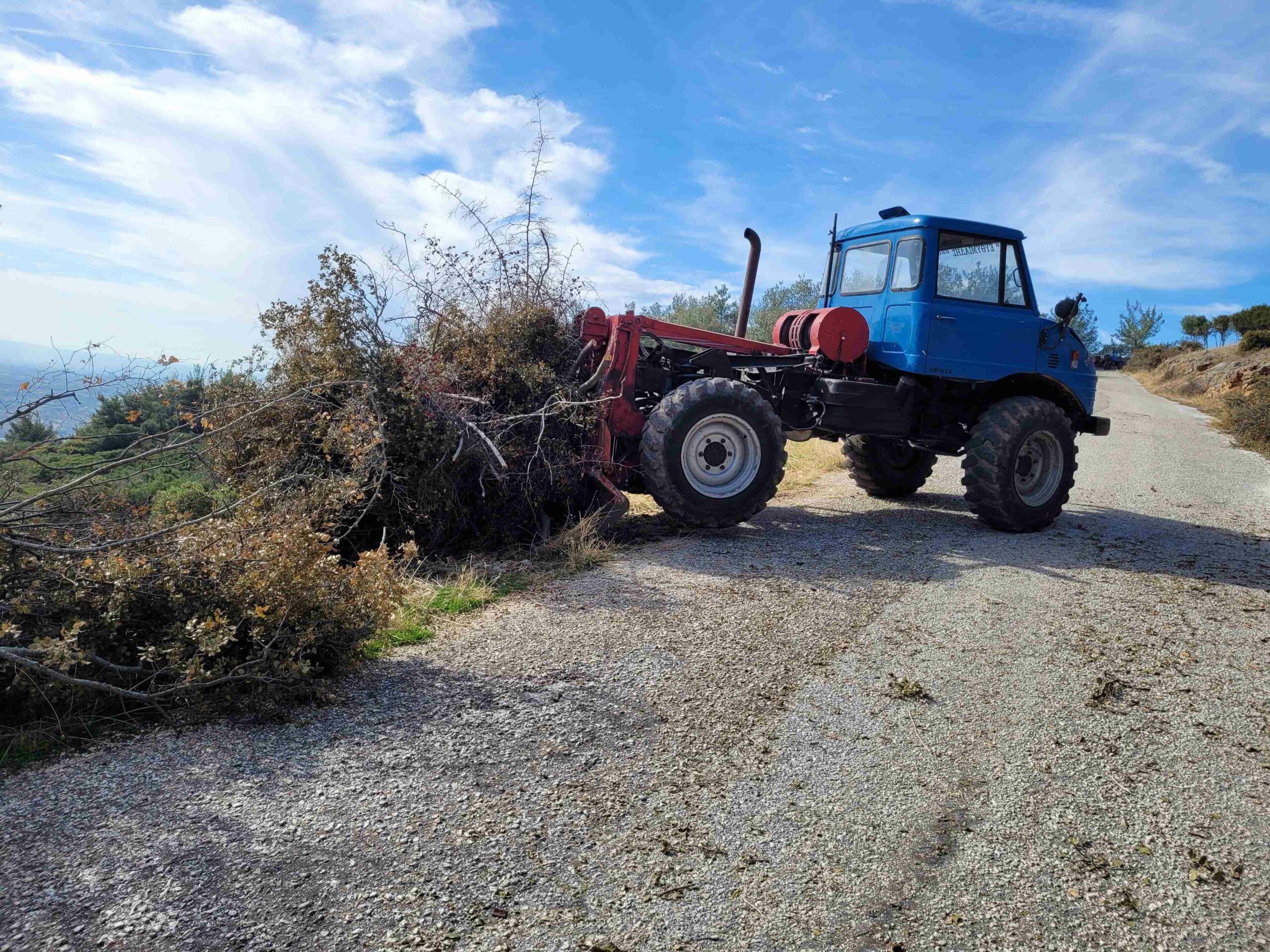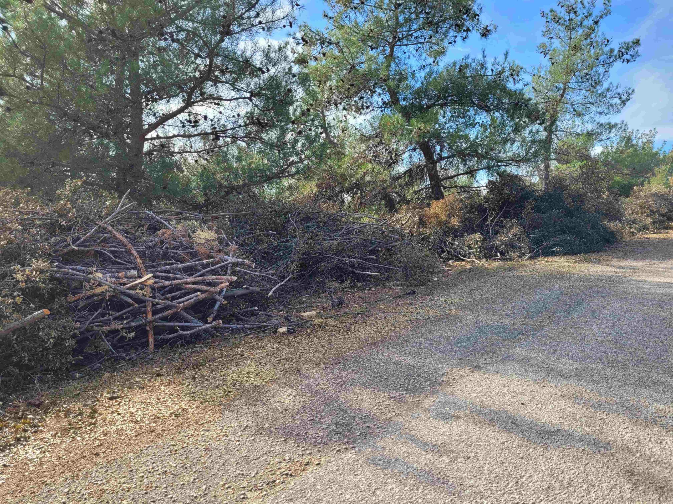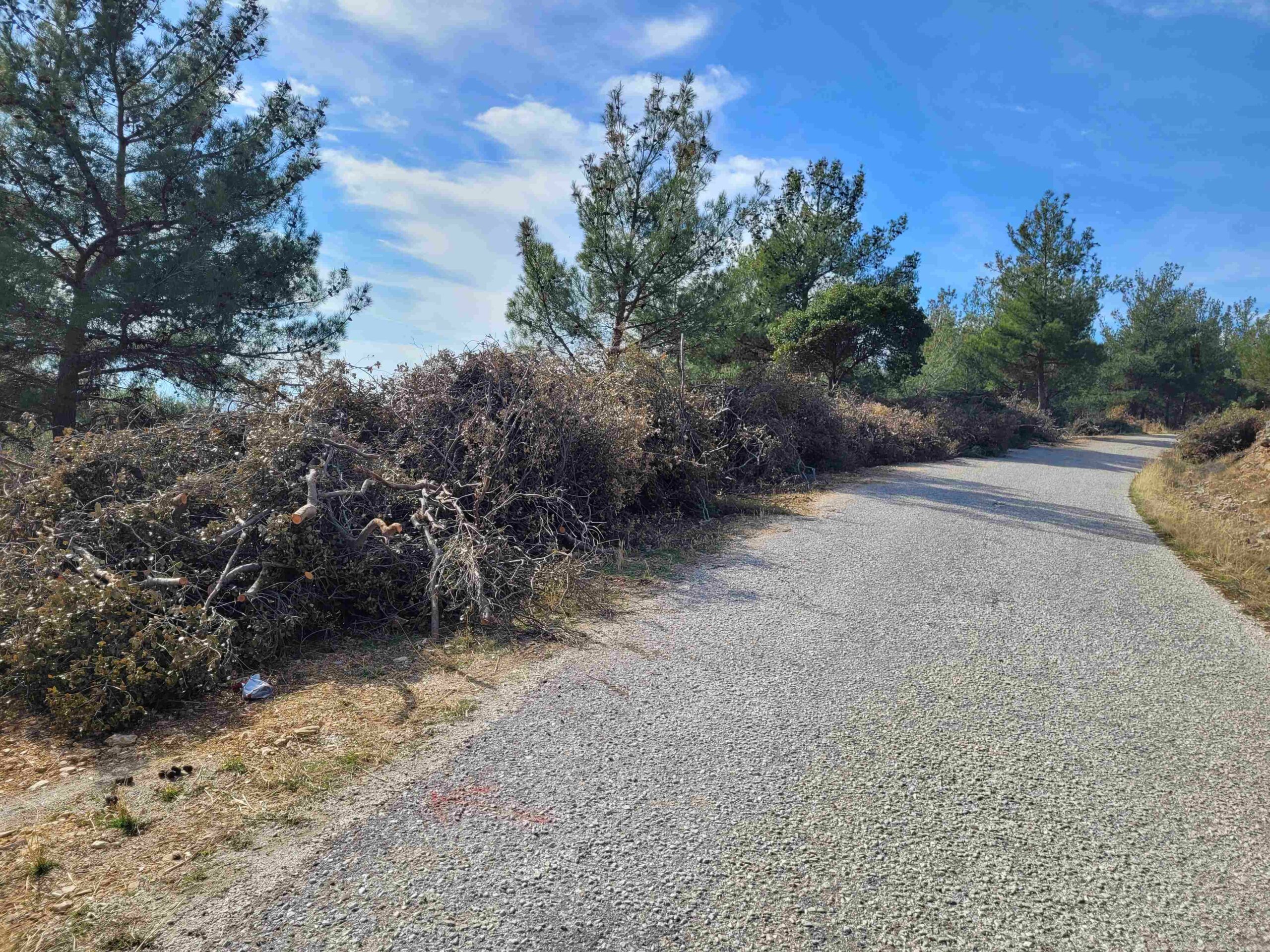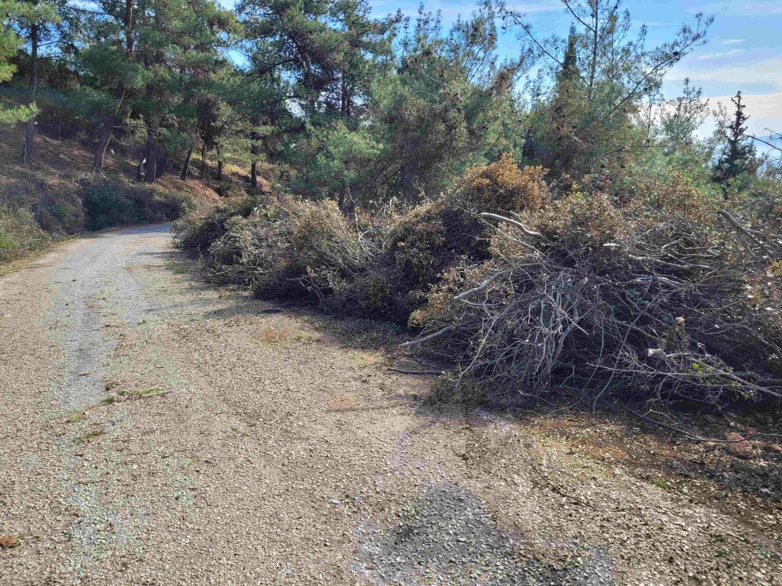 Με ευθύνη του Δασαρχείου, απομακρύνονται πεσμένα δέντρα ή κλαδιά ενώ παράλληλα γίνεται καθαρισμός μονοπατιών και δρόμων, με στόχο την προστασία του περιαστικού δάσους κατά την αντιπυρική περίοδο και την αισθητική του αναβάθμιση.