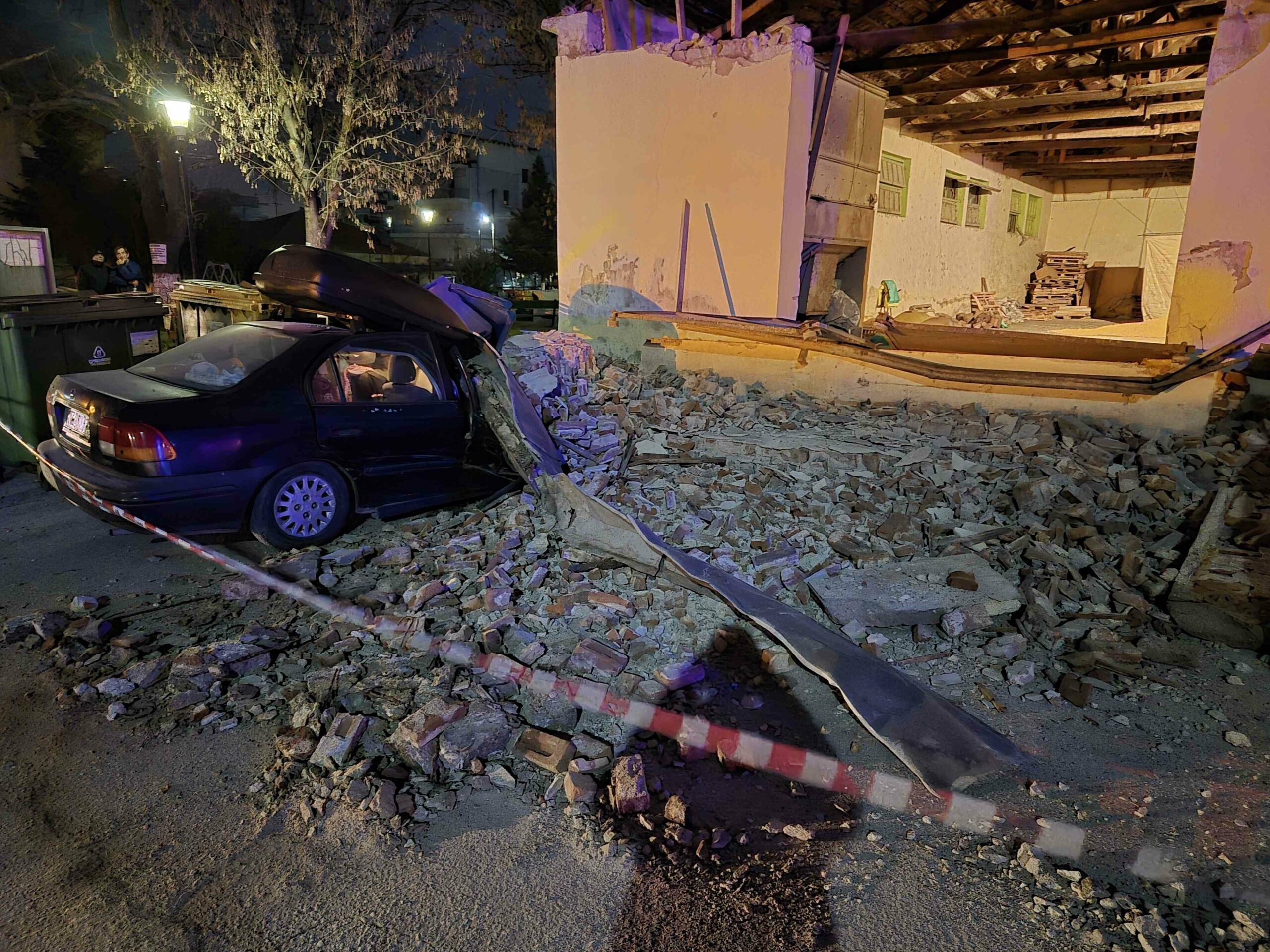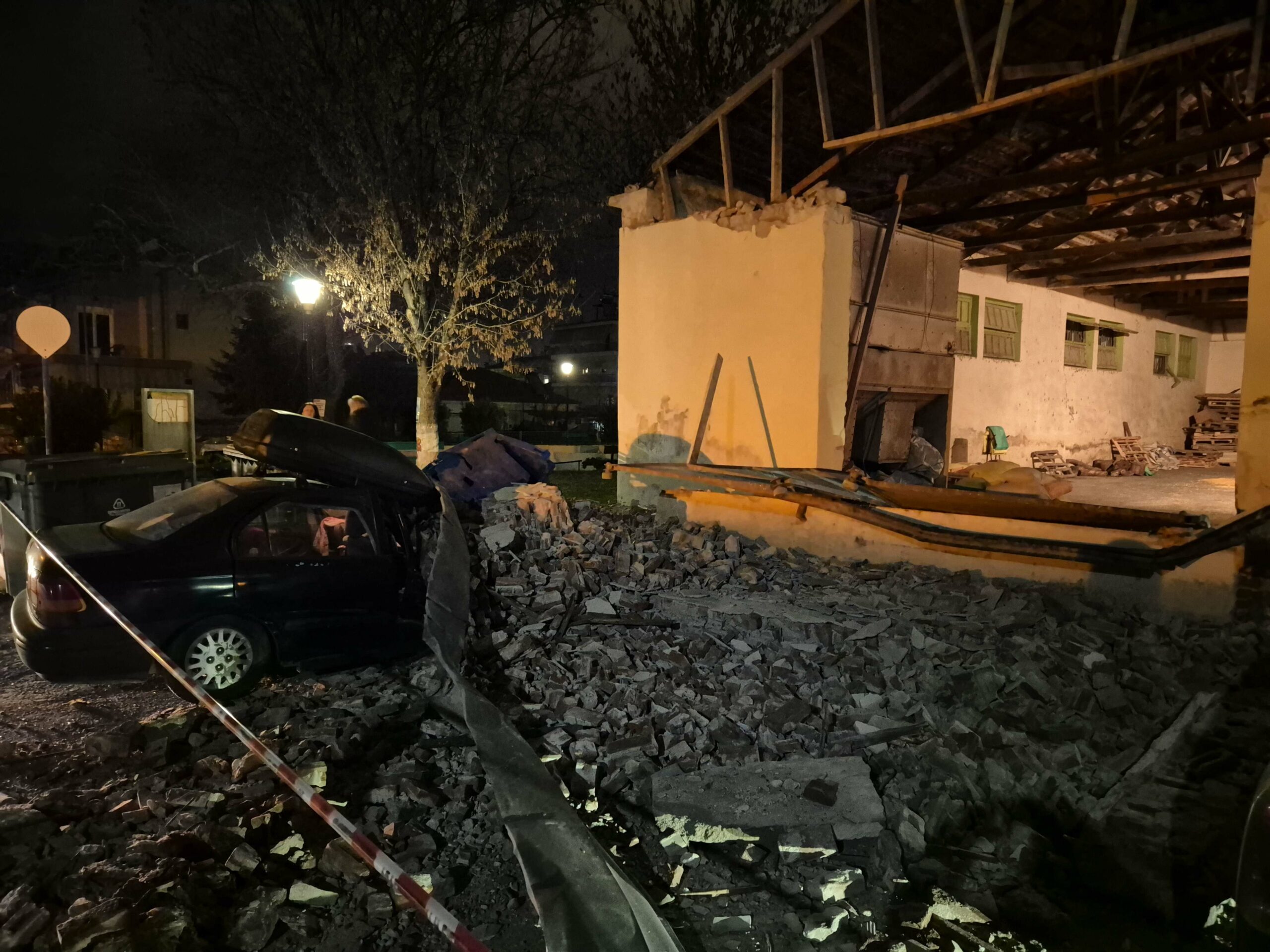 Ευτυχώς δεν υπήρξαν θύματα αλλά όμως καταπλακώθηκαν δύο αυτοκίνητα.