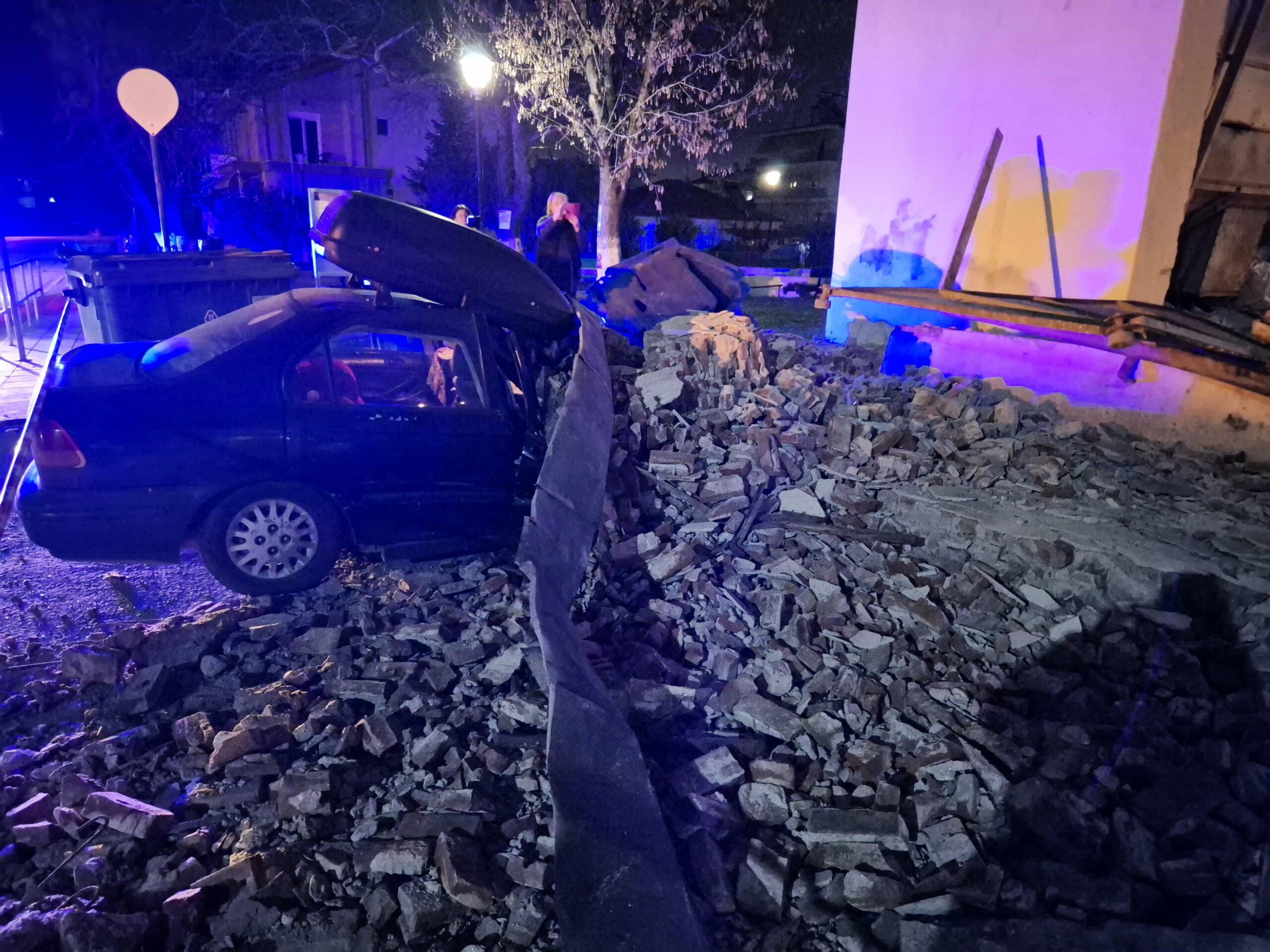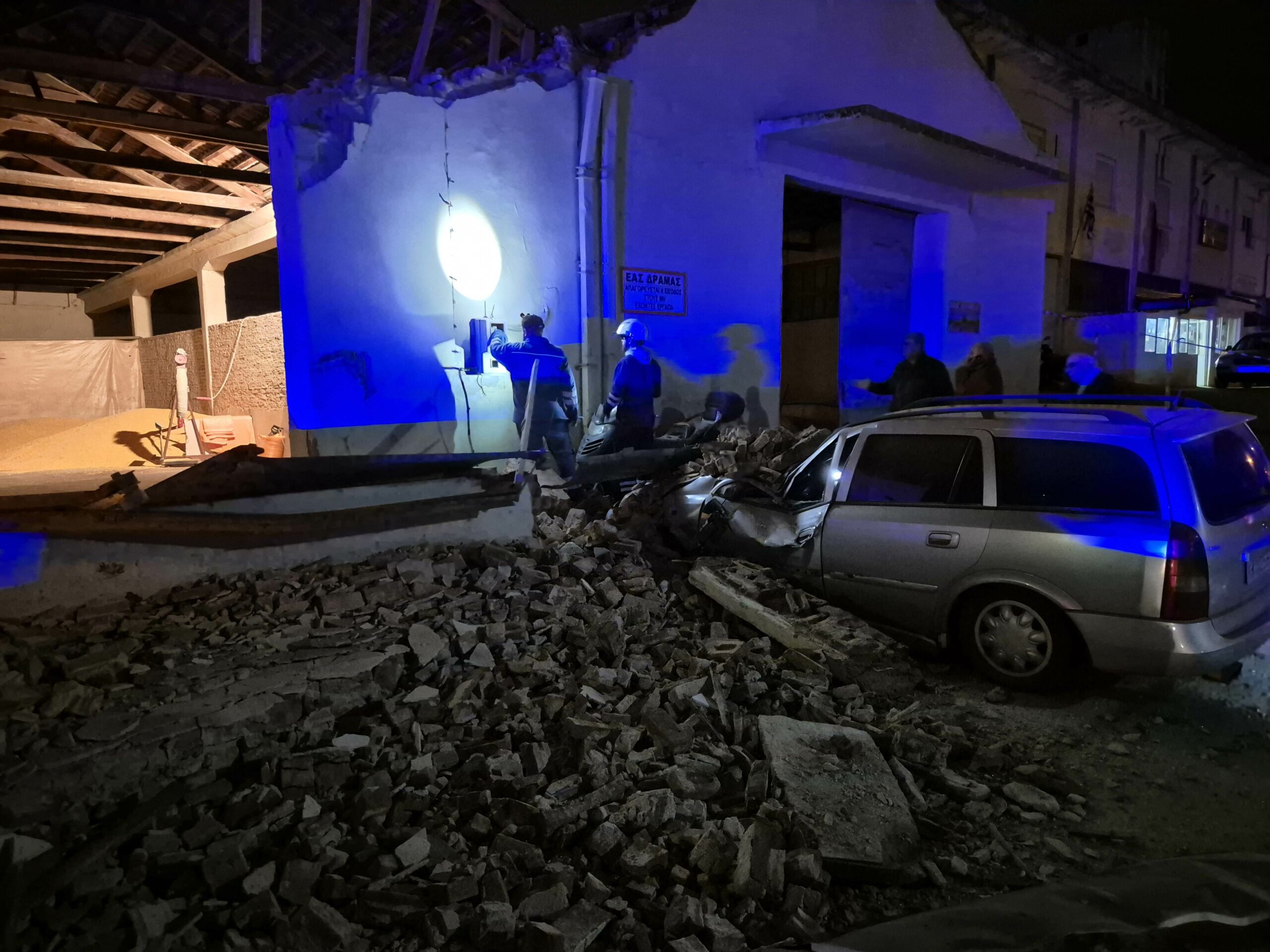 Δράμα: Κατέρρευσε πρόσοψη κτιρίου – καταπλακώθηκαν δύο αυτοκίνητα – Ευτυχώς χωρίς θύματα