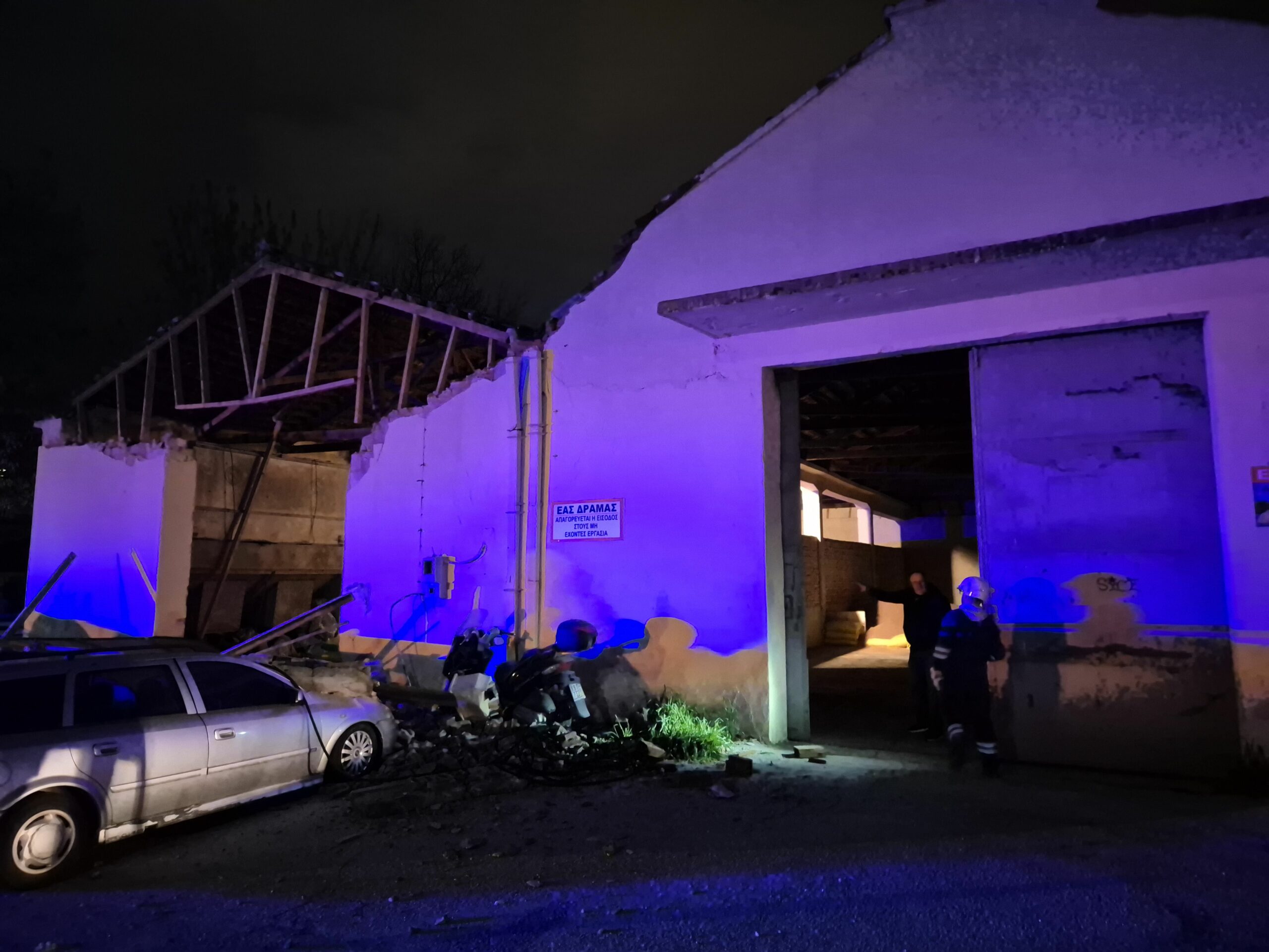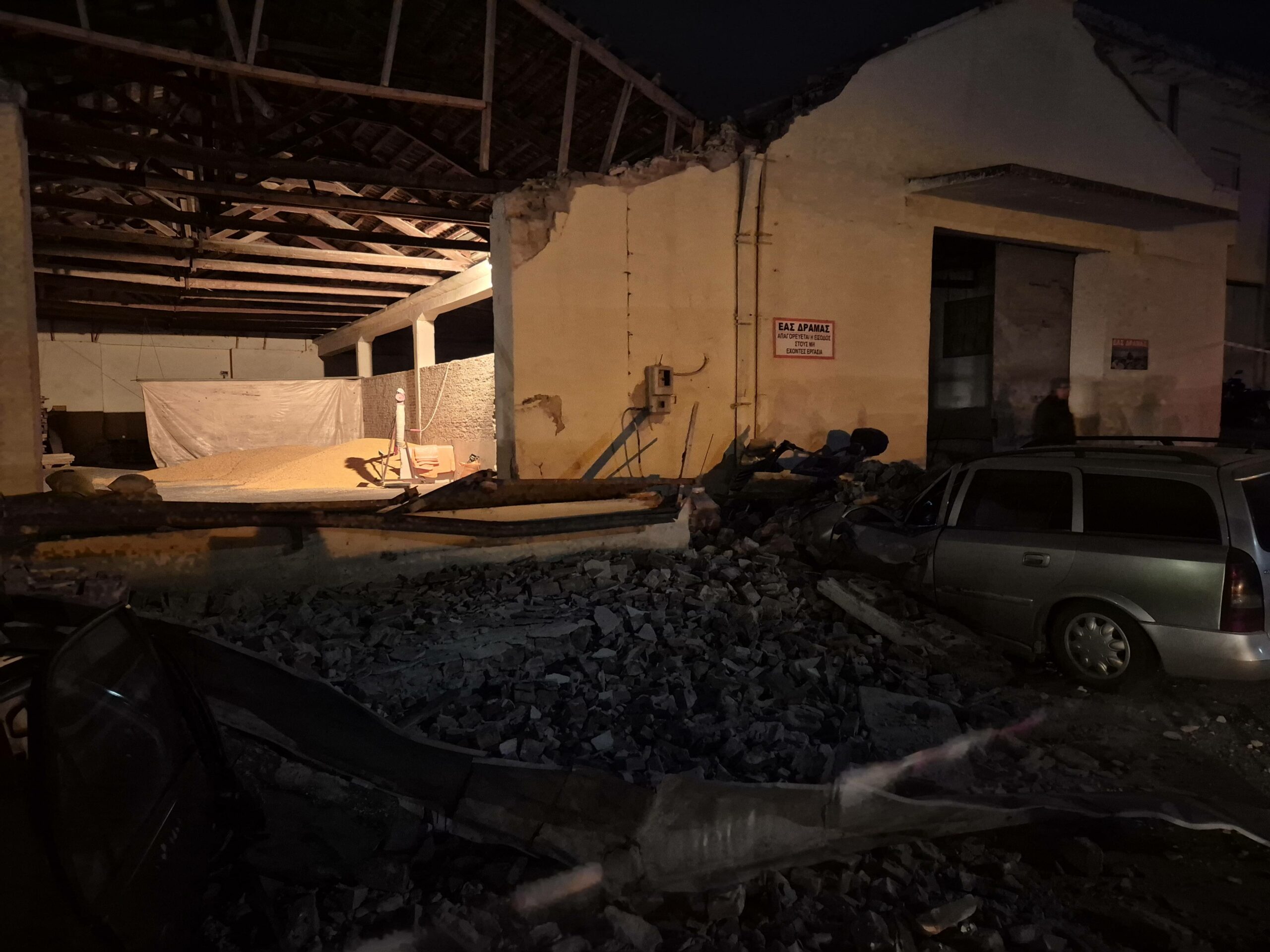 Κατέρρευσε ξαφνικά το απόγευμα της Κυριακής 25 Ιανουαρίου, η πρόσοψη του κτιρίου της πρώην Ένωσης Αγροτικών Συνεταιρισμών Δράμας, λίγο πριν τις σιδηροδρομικές γραμμές,  στην περιοχή Αγίου Κωνσταντίνου και Ελένης.