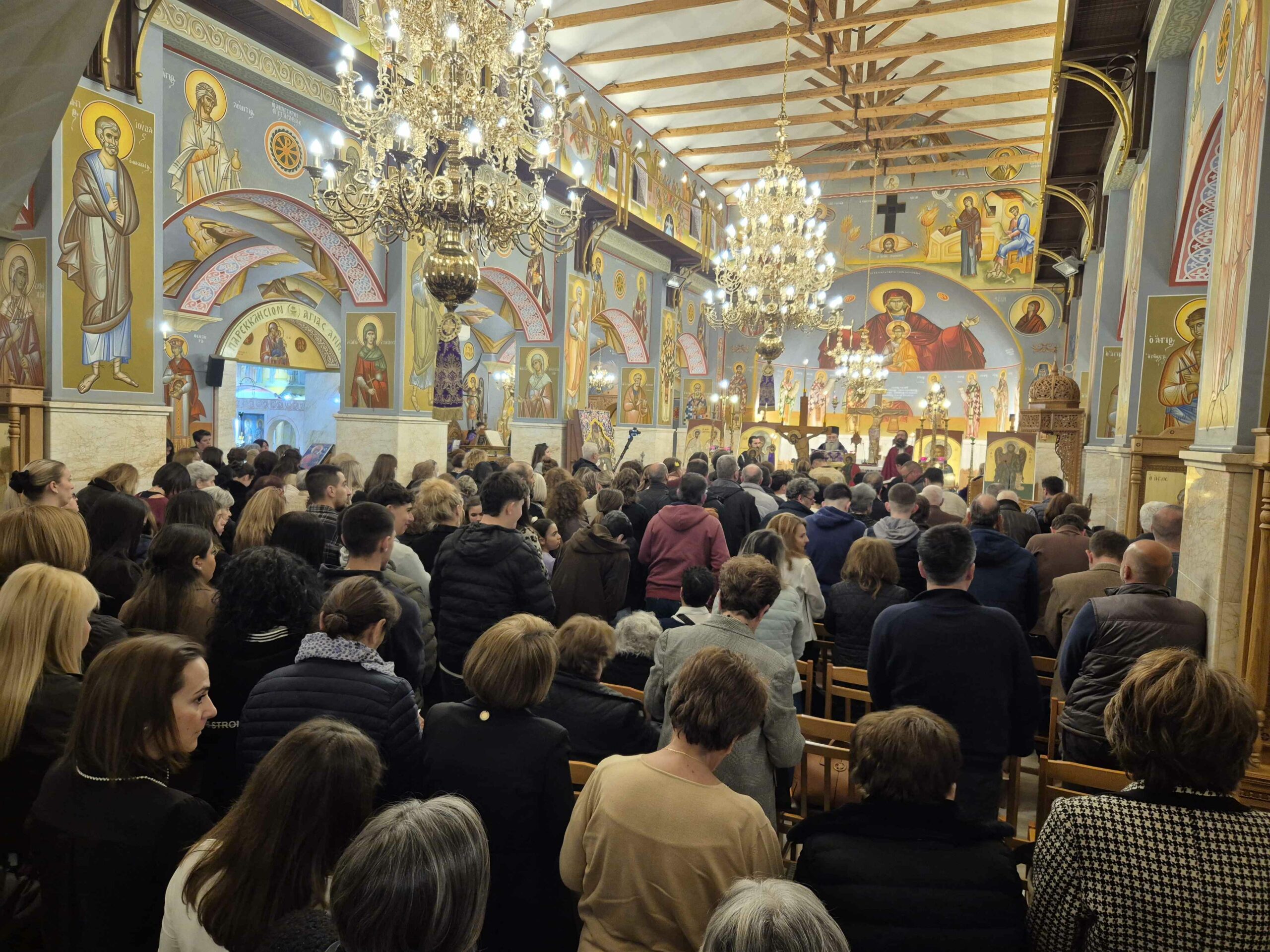 Ο ναός γέμισε από κόσμο κάθε ηλικίας, που έσπευσε να συμμετάσχει σε μία από τις πιο σημαντικές ακολουθίες της Μεγάλης Εβδομάδας. Η παρουσία του Σεβασμιωτάτου προσέδωσε ιδιαίτερη λαμπρότητα στην τελετή.