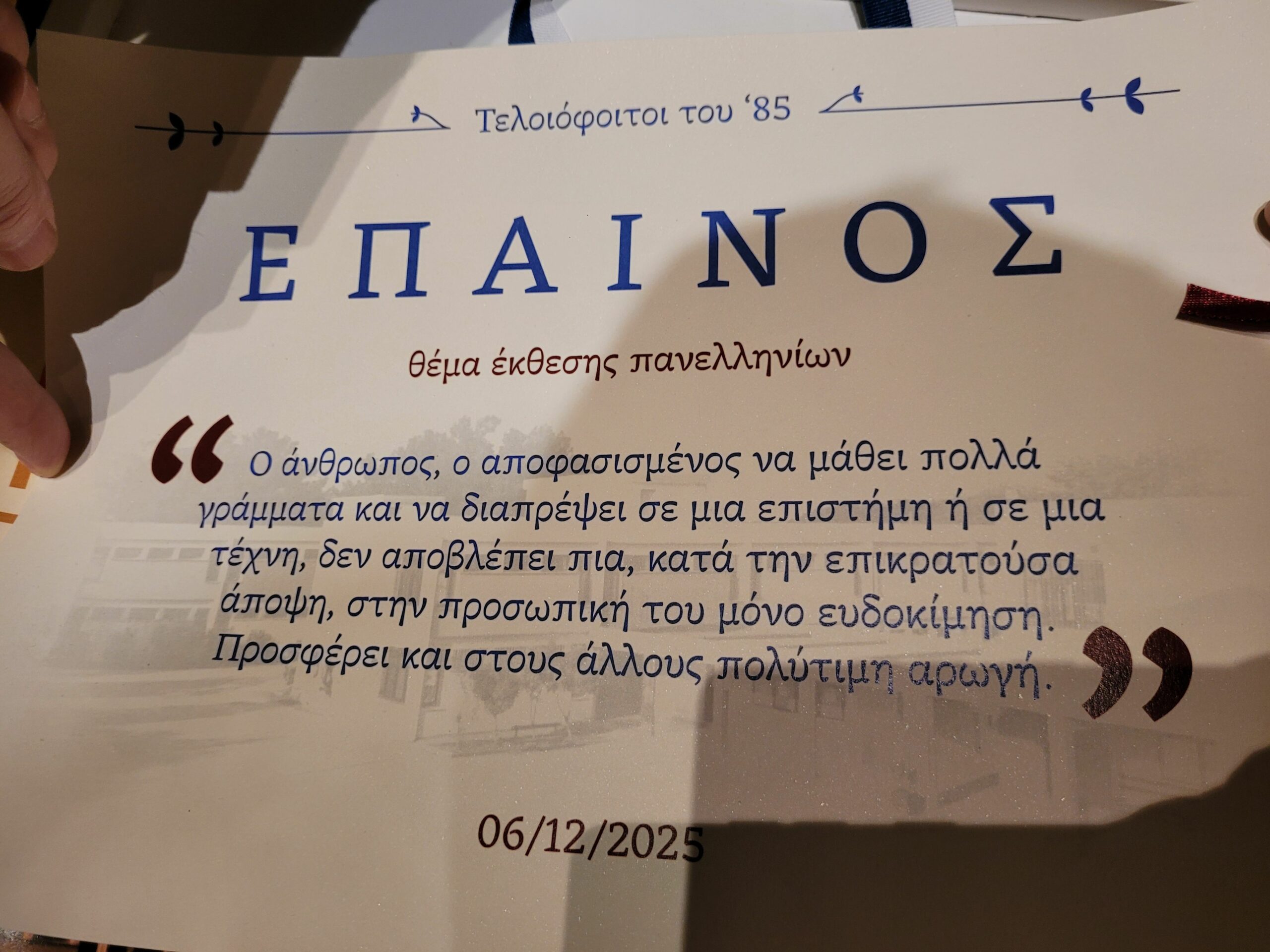 Το βράδυ του Σαββάτου 6 Δεκεμβρίου 2025, μετά από σαράντα χρόνια, οι απόφοιτοι του 1985 του 2ου Γενικού Λυκείου Δράμας πραγματοποίησαν με μεγάλη επιτυχία reunion στον Ήδωνα.