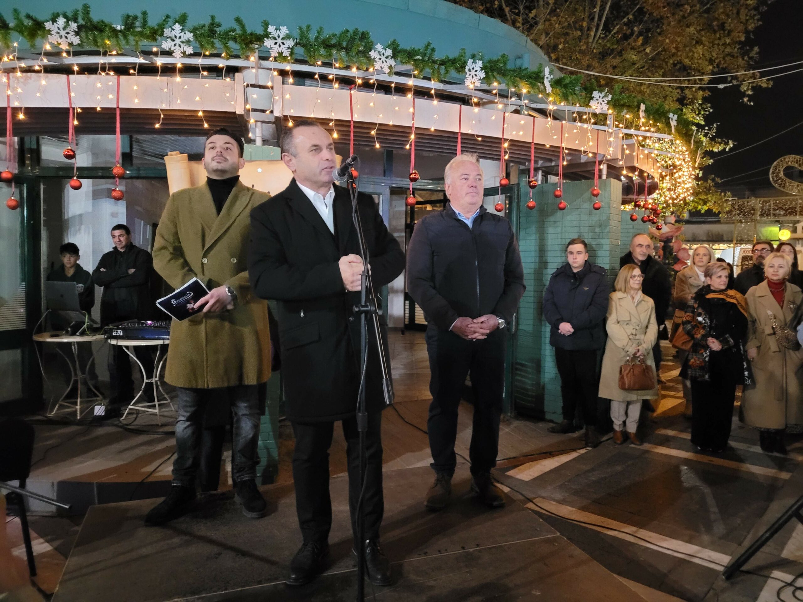 Ευχές στους συγκεντρωμένους, για χαρούμενες γιορτές, έδωσαν ο Δήμαρχος της Δράμας Γιώργος Παπαδόπουλος και ο εντεταλμένος σύμβουλος για την Ονειρούπολη Χρήστος Μαυρίδης