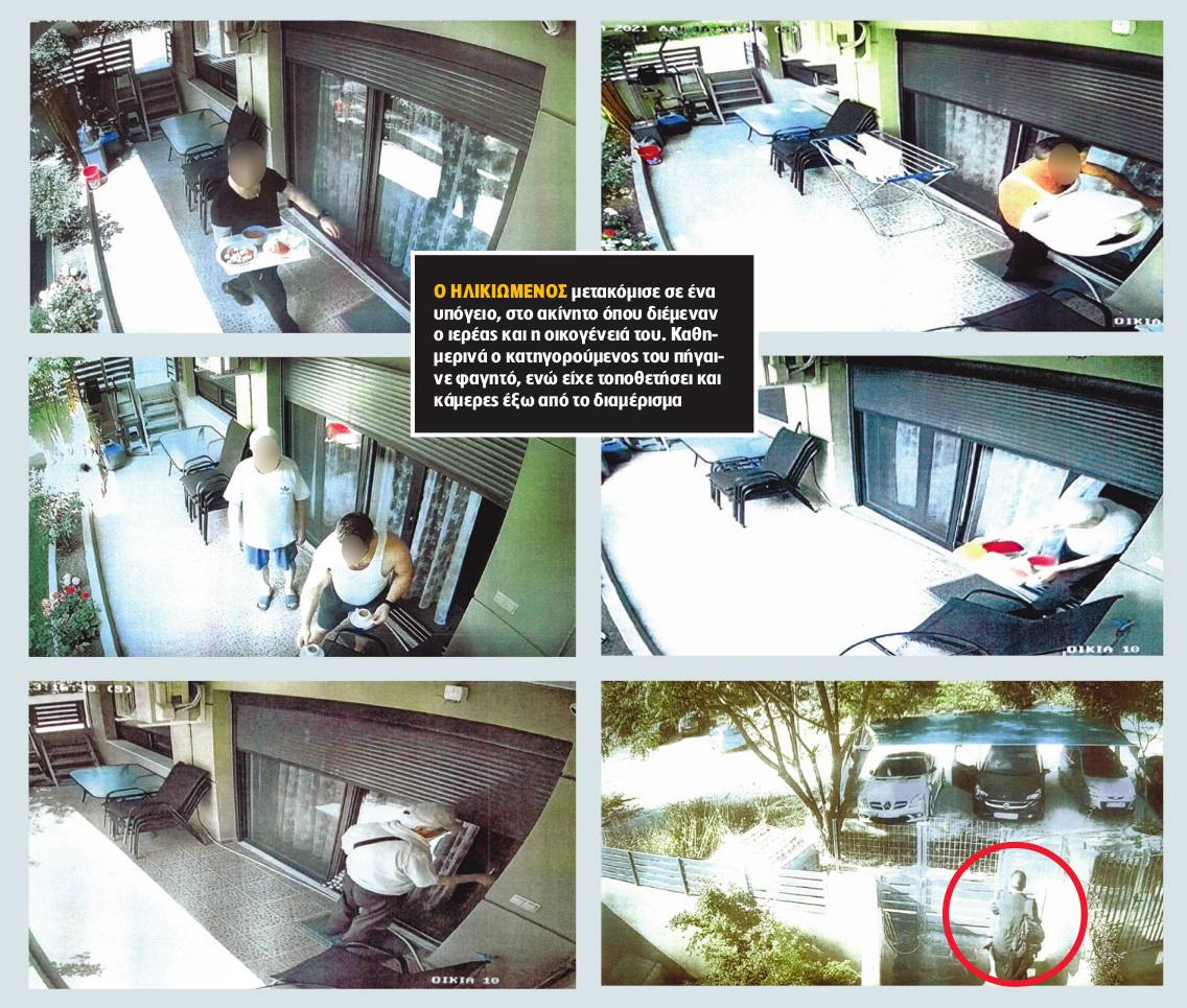 Όταν ο ηλικιωμένος μετακόμισε σε ένα υπόγειο, στο ακίνητο όπου διέμεναν ο ιερέας και η οικογένειά του, καθημερινά ο κατηγορούμενος του πήγαινε φαγητό. Ο ίδιος μάλιστα προκειμένου να πείσει το δικαστήριο ότι φρόντιζε τον ηλικιωμένο, παρουσίασε φωτογραφίες από την κάμερα που είχε τοποθετήσει έξω από το διαμέρισμα του 75χρονου.