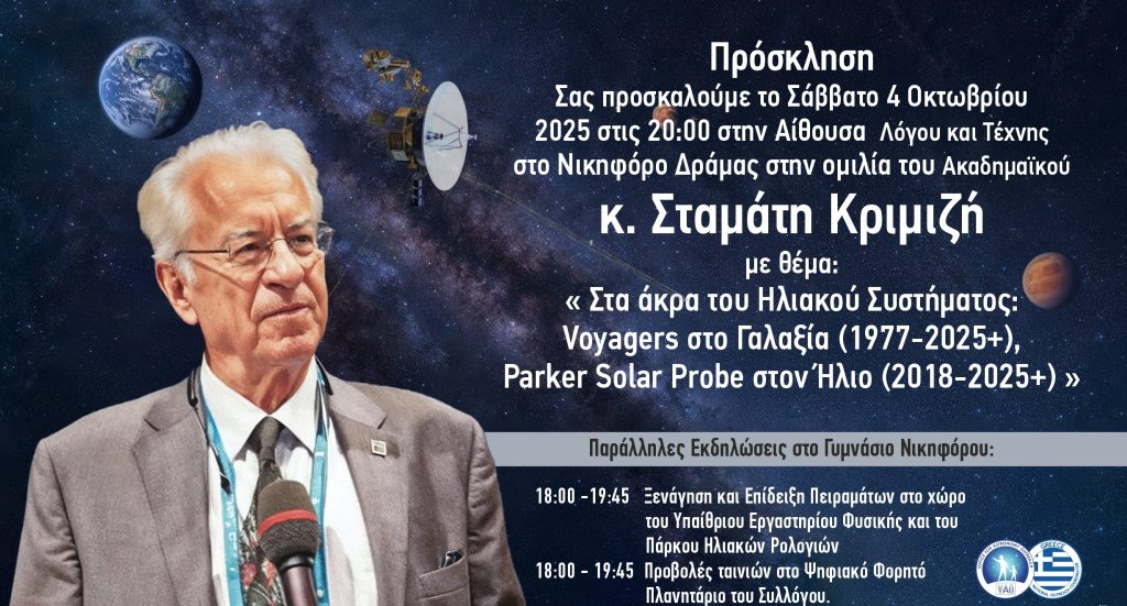 Ο πανεπιστημιακός – διαστημικός επιστήμονας και επικεφαλής ερευνητής σε διαστημικές αποστολές της NASA, Σταμάτης Κριμιτζής θα έρθει στο Νικηφόρο Δράμας, ως κεντρικός ομιλητής σε εκδήλωση που θα πραγματοποιηθεί το ερχόμενο Σάββατο 4 Οκτωβρίου, στις 8 το βράδυ.